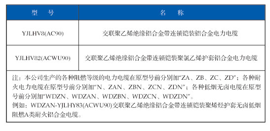 電纜的型號、名稱